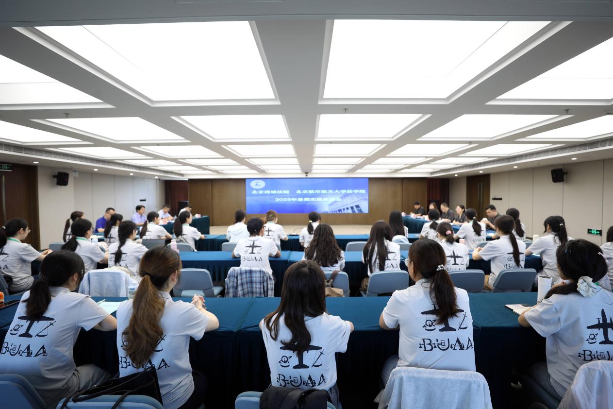 魏祥胜法官在发言中表示,北航同学们来到西城法院的一个月,为法院的审判工作注入了年轻的活力。在实习期间,实习同学参与了草拟文书、联系当事人、整理卷宗等一系列工作,对待每项工作,均能做到细致认真、积极学习、主动思考,在日常工作中展现了极强的综合能力,充分体现了北航“德才兼备、知行合一”的校训。期待同学们带着在西城法院的收获回到校园,继续保持勤学善思的优良作风,在未来的学习中进一步锤炼专业能力,将北航培养的科学精神与法学实践深度融合,成长为兼具技术背景与法律素养的复合型人才。秉持法治信仰,坚守公平正义,以专业能力服务社会,以创新思维推动进步,在更广阔的舞台上实现人生价值。