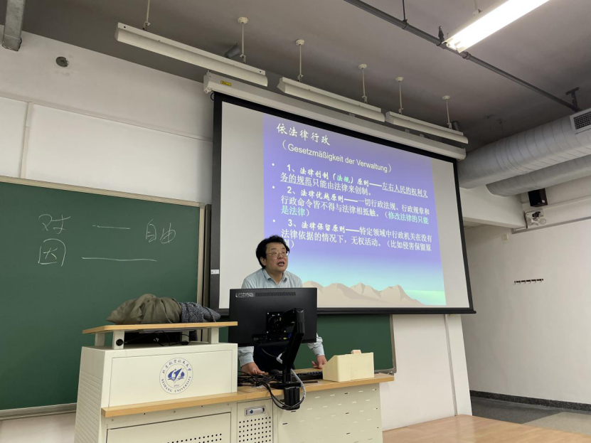 2023年2月21日下午,mg4355vip检测中心mg4355cc线路检测春季学术讲座系列第一期在mg4355vip检测中心新主楼B201举行。第一期讲座由mg4355vip检测中心mg4355cc线路检测王天华教授主讲,主题是“国家法人说与主观公权利”。